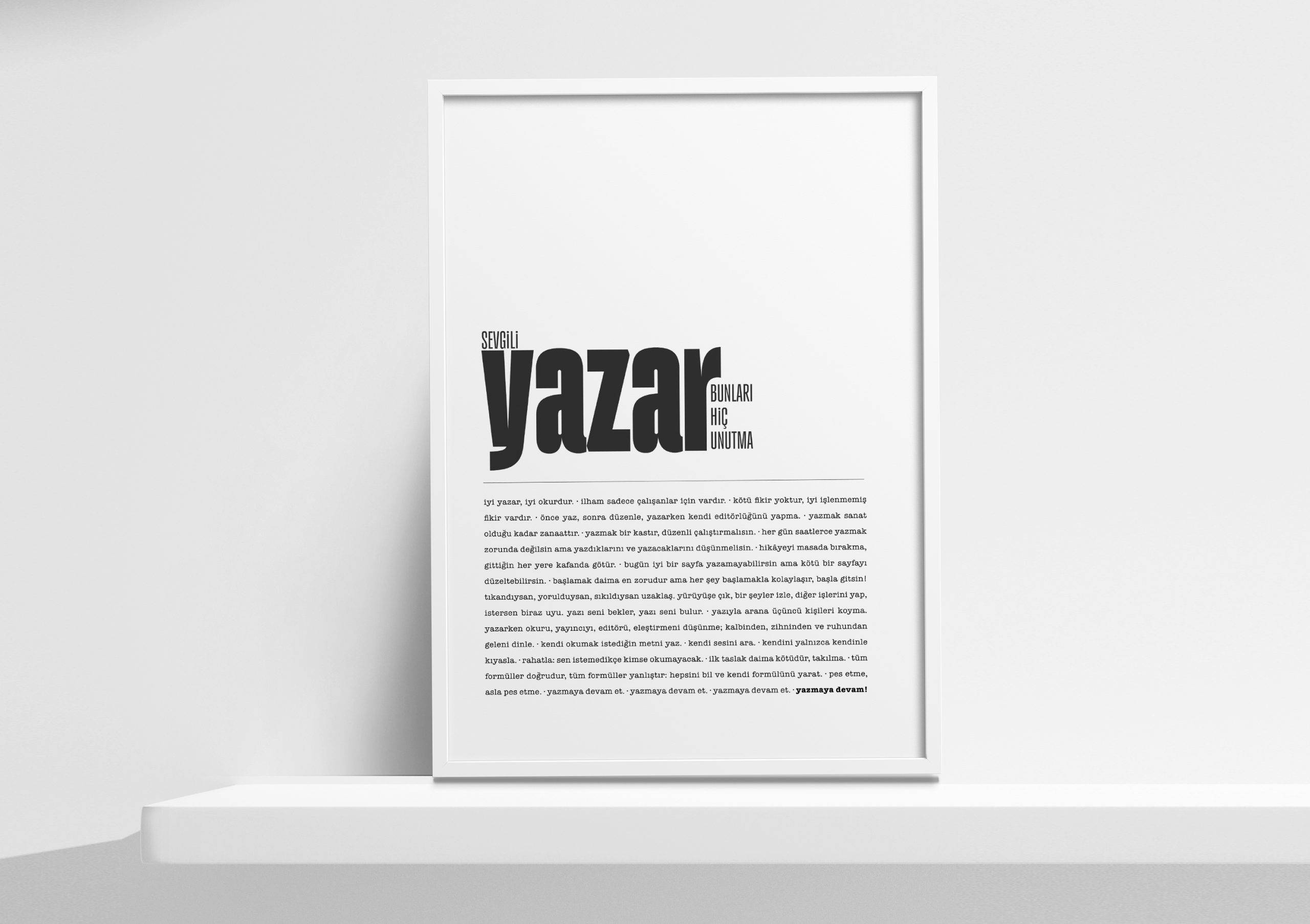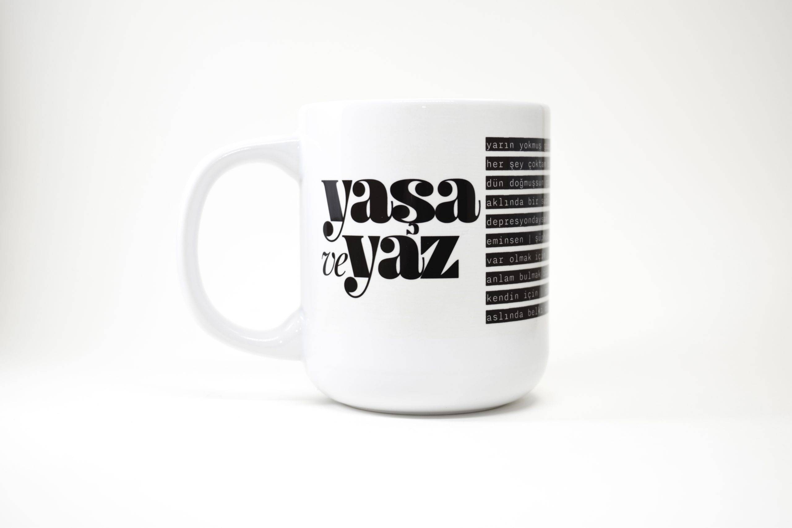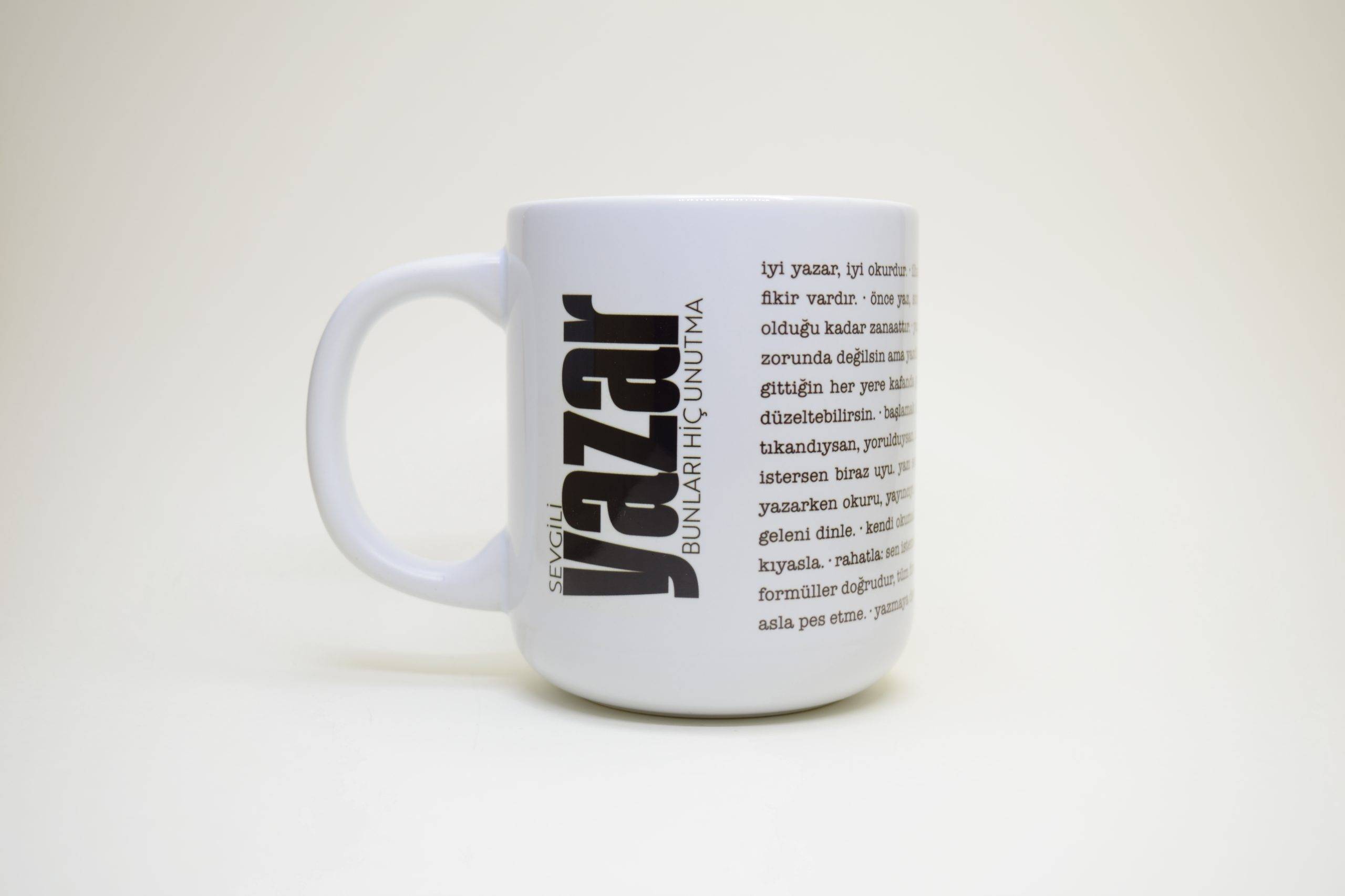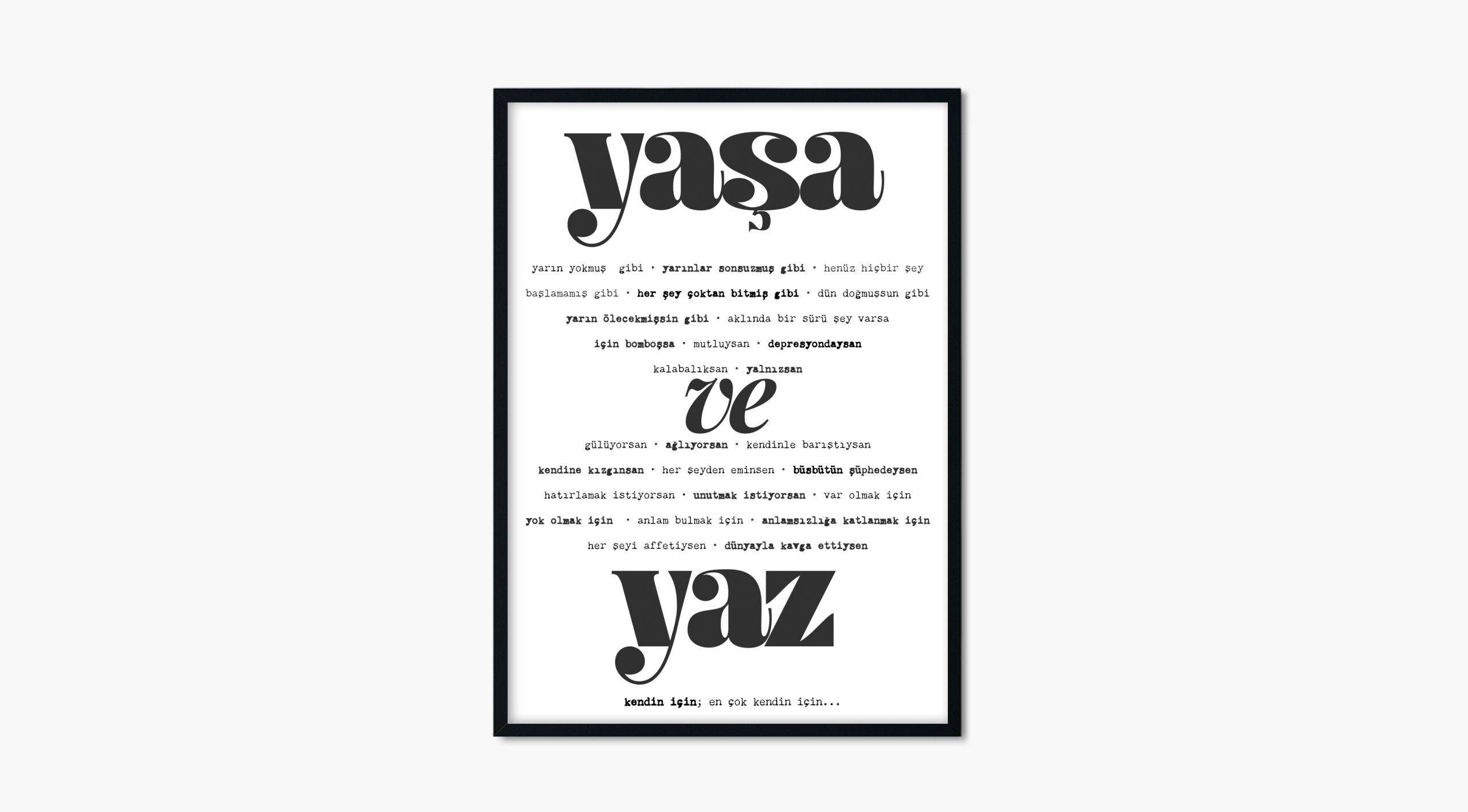 Bu baskı kupa tasarımları arasında en çok sevilenlerden “Sevgili Yazar” ve “Yaşa ve Yaz” aynı zamanda A4 tablo olarak da tasarlandı.